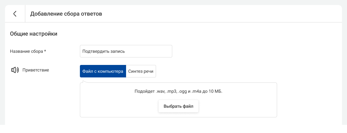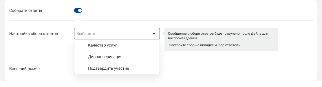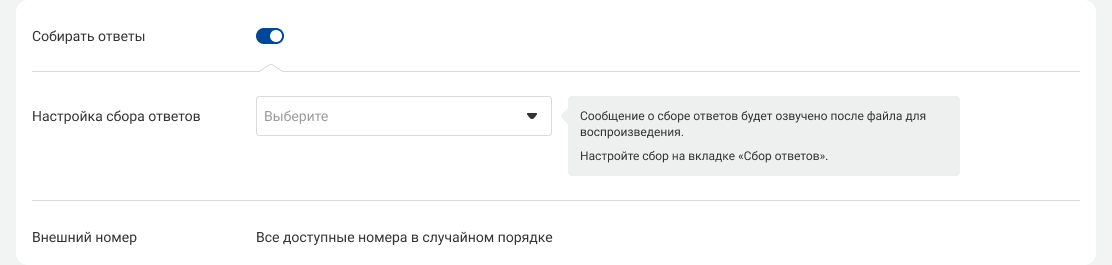 3. Включите настройку «Собирать ответы». В этом случае клиент сначала услышит аудиосообщение из задания на автоинформирование, а затем – приглашение пройти опрос.