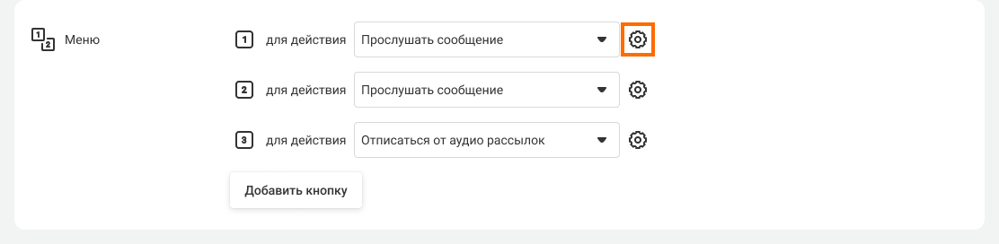 4. Для каждой кнопки голосового меню, которая упоминается в аудиосообщении, укажите, что произойдет при нажатии.