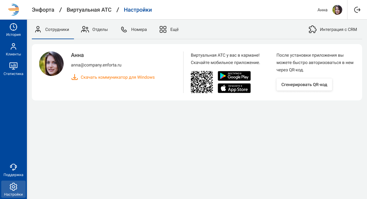 Возможности личного кабинета АТС не зависят от уровня доступа. Все, что описано ниже, настраивается одинаково у администраторов, пользователей и ограниченных пользователей.