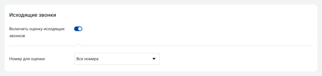 4. Настройте оценку исходящих звонков (сдвиньте переключатель вправо) и выберите номера, при звонках с которых АТС будет предлагать клиентам оценить разговор.