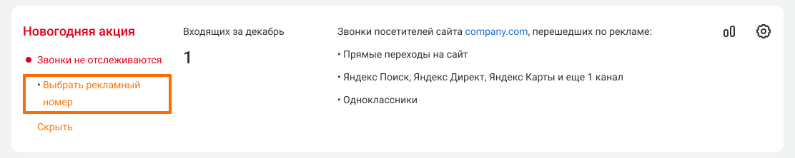 6. Выберите номер, звонки на который будут считаться переходами с выбранных рекламных каналов.