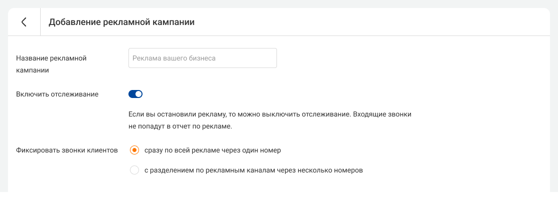 3. Введите название рекламной кампании и выберите, как будут отслеживаться звонки клиентов: