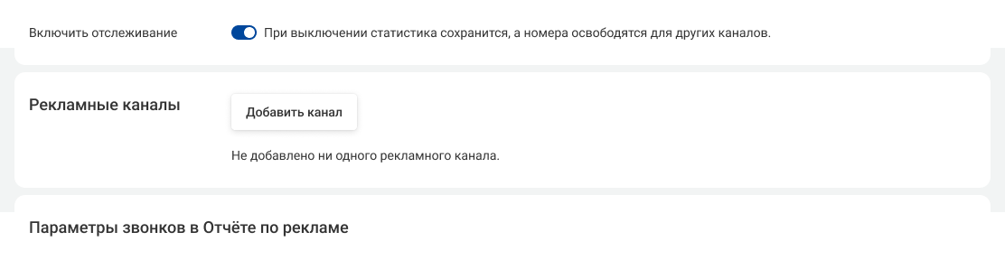 После привязки одного номера к рекламному каналу, добавьте остальные каналы.