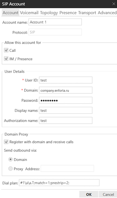 4. В открывшемся окне можно придумать и ввести название аккаунта, ввести имя пользователя, пароль и адрес домена. Нажмите ОК.